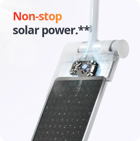 Solar Powered, Always Ready - With the solar panel (sold separately), 3 hours of light a day gives unlimited power